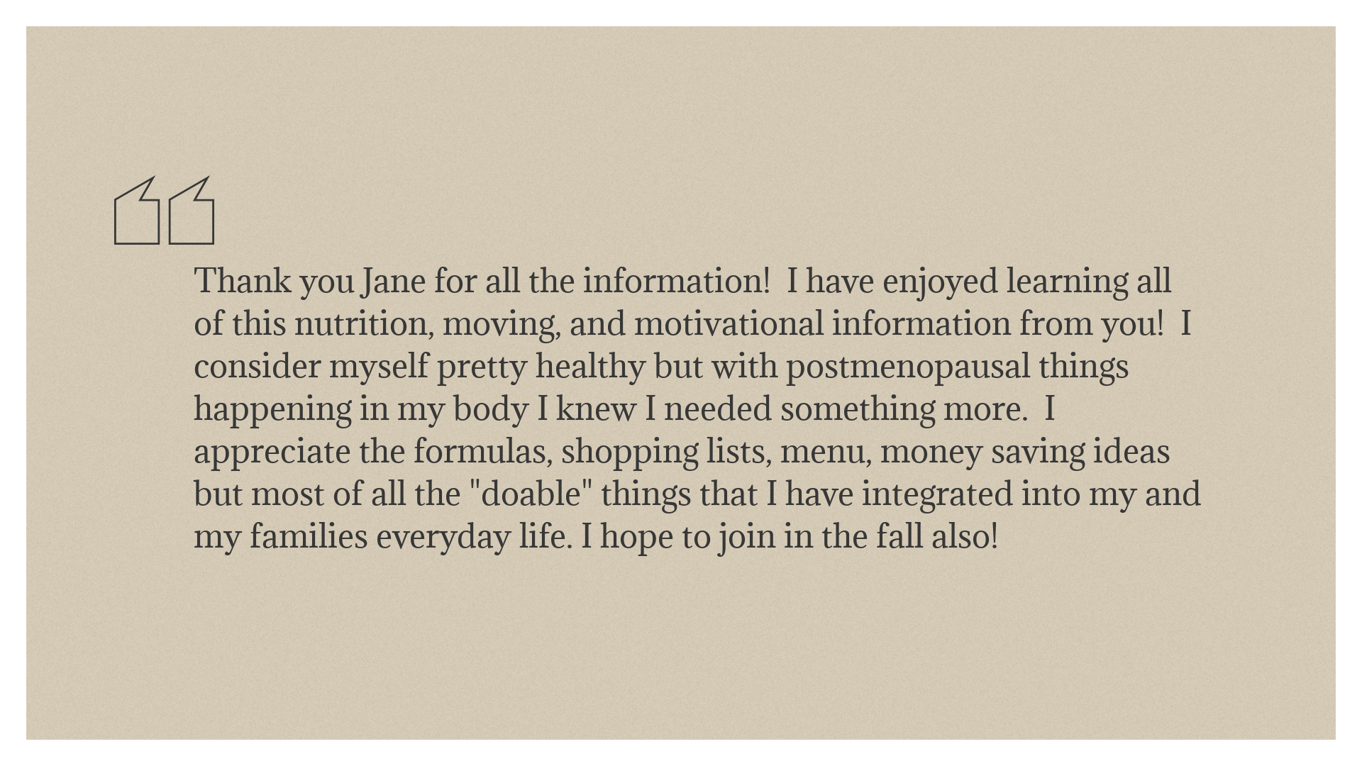 Mark your calendar for our first call on Thursday, January 22nd at 12pm. The cost for this transformative experience is $150, which covers a 4-week meal plan, comprehensive food lists, 4 engaging Zoom calls (calls recorded if you can’t attend live), access to a group app where we share protein-rich meal ideas, and the dedicated support of your health coach, Jane Burnette. Additionally, you'll have the option to join our "Steps" group, where the highest stepper will win an exclusive prize!